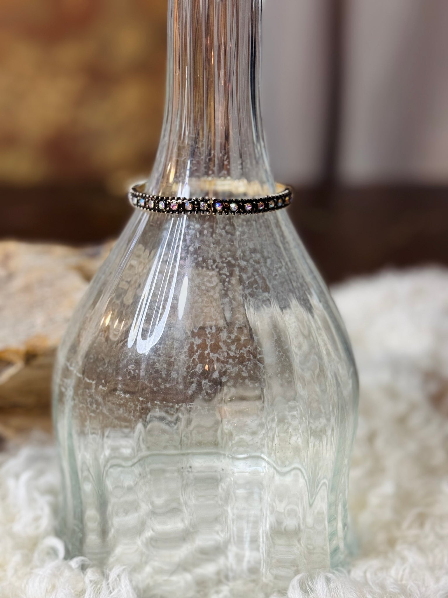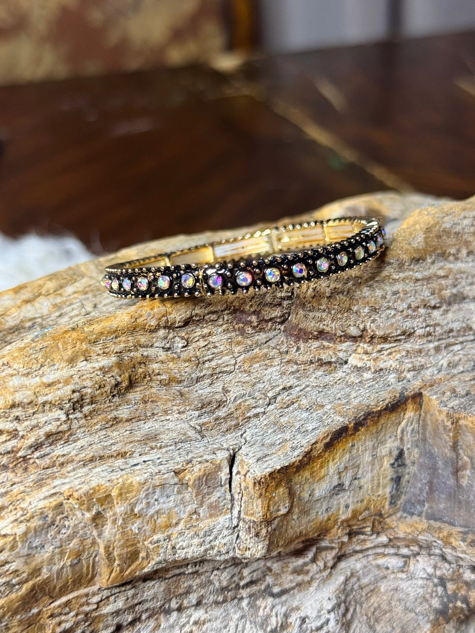 Delicate yet eye-catching, the High Plains Sparkle Stretch Bracelet features a slim gold-toned band with fine ridged texture and rows of shimmering rhinestones. Lightweight and comfortably stretchable, it’s perfect for everyday wear or adding a soft touch of sparkle to your stack. Subtle, refined, and effortlessly Western-inspired.