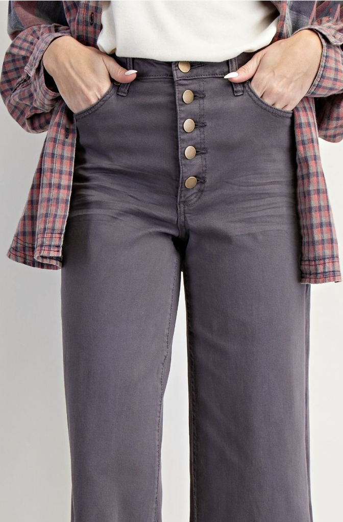 Description: BUTTON FRONT STRETCH TWILL PANTS
