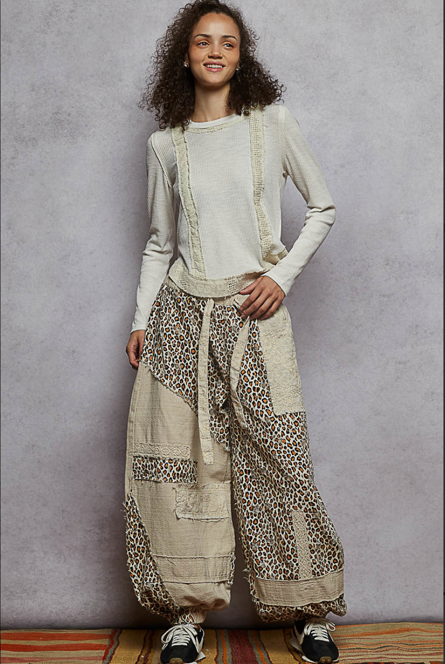 Designed in patchwork relaxed fit jogger pants in printed woven.