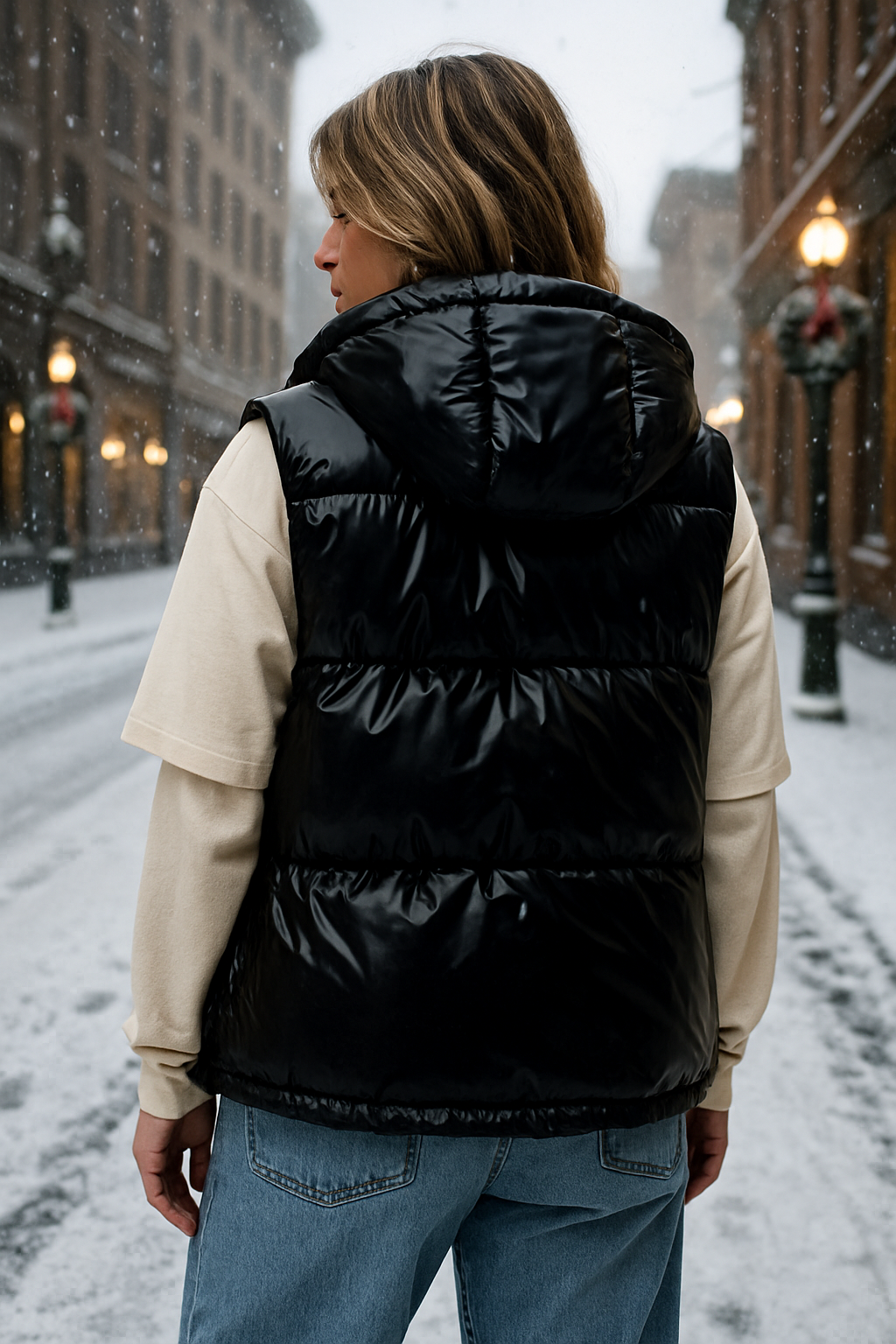 Description: -SNAP BUTTON AND ZIP FLY CLOSURE-DRAWSTRING AT HOOD-PUFFER HOOD VEST-BUILT IN HOOD -WINTER ESSENTIAL / HOLIDAY-SMALL MEASUREMENTS : LENGTH - 23.25" & BUST - 22.5"*****PLEASE CHECK AVAILABLE DATE*****