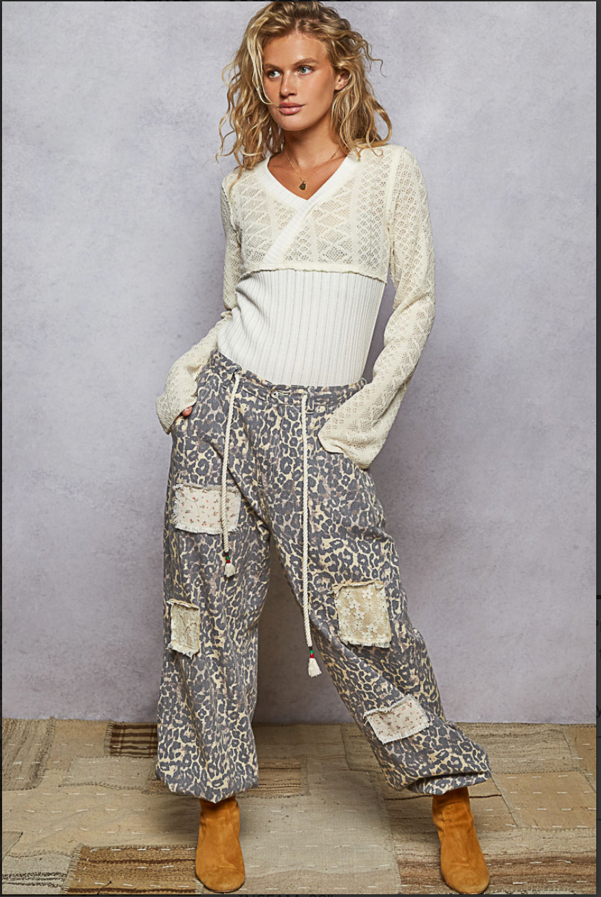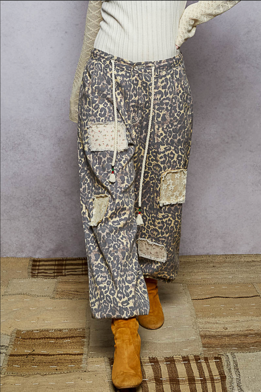 Crafted in printed twill, these roomy fit bottoms feature a mix of varied lace and woven patchwork for a unique, handcrafted look. Finished with an accented drawstring at the waist, they combine comfort with standout style, perfect for everyday streetwear.