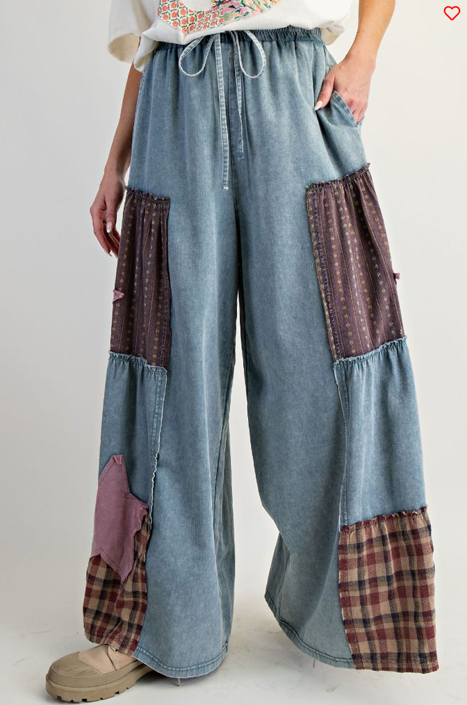 Description: MIXED PRINT MINERAL WASHED CHAMBRAY PANTS